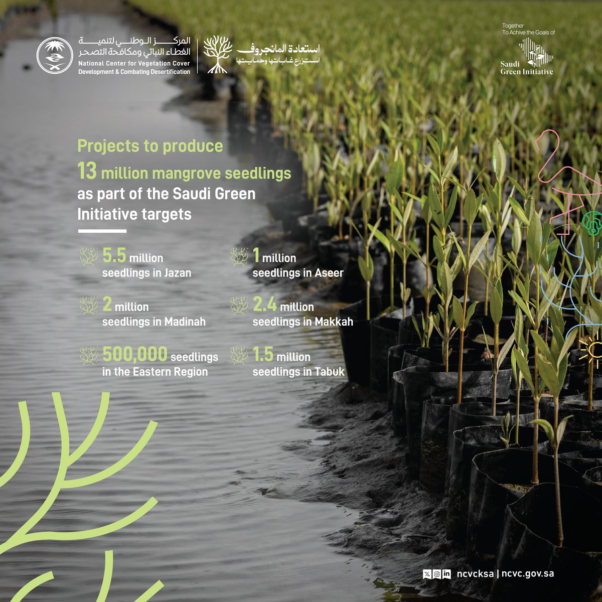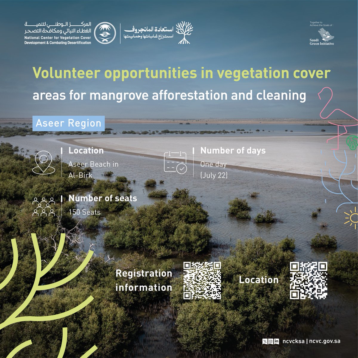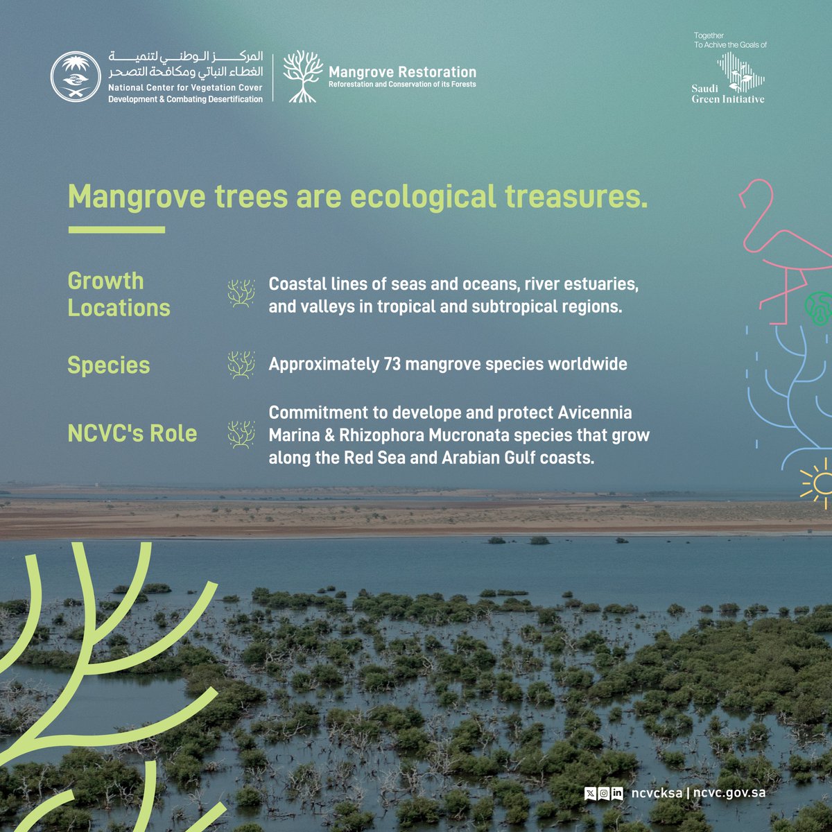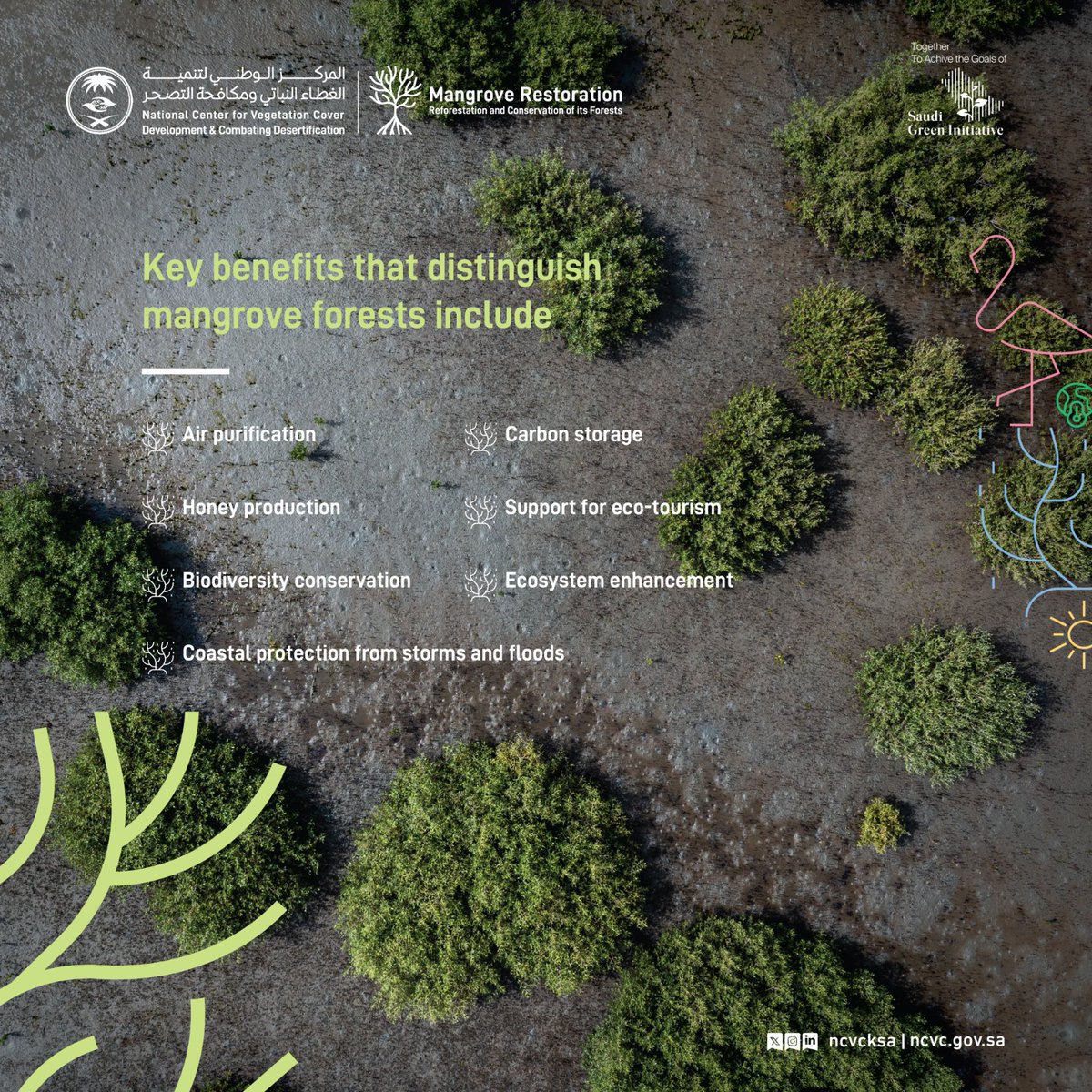 The events, which were launched in conjunction with the International Day for the Conservation of the Mangrove Ecosystem 2024, included awareness programs and volunteer opportunities in several regions of the Kingdom. They also highlighted the efforts made by the Center in this regard by proposing projects to plant 13 million mangrove trees in the coastal areas of the Arabian Gulf and the Red Sea, in line with the goals of the Saudi Green Initiative and Saudi Vision 2030.​​